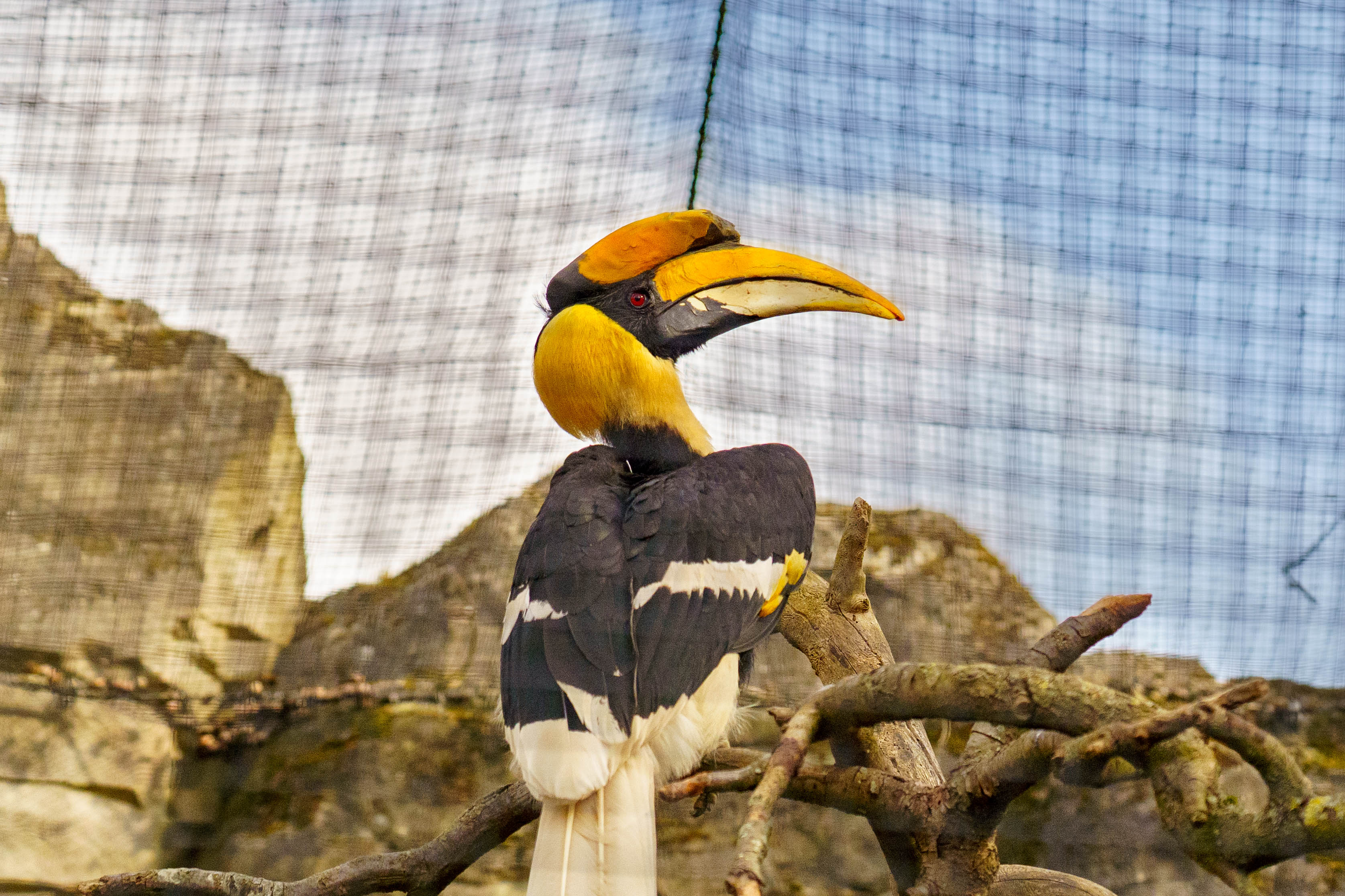 Het weer is heerlijk en mijn humeur komt op de normale waarde. Mijn fototoestel had ik niet helemaal goed ingesteld, dus de vrolijke neushoornvogels in verschillende kleuren waren mijn eerste modellen. Jammer van het gaas en het lastige scherpstellen daardoor heen, maar toch een paar leuke beelden kunnen vastleggen. Zo nu echt door de ingang en op naar de eerste dieren. Ik hoor een vader tegen zijn zoontje zeggen, dat dat nu een vogel is. Educatie in de notendop! Een grote, voegt de alwetende vader er nog aan toe! Het park viel op door ruimte en rust. Voor de kinderen volop spannende paden om de dieren te bekijken. Een paar vaders moesten er ook aan geloven. Heel leuk en ruim van opzet. Het park ziet er prima uit! Op de decoraties na!